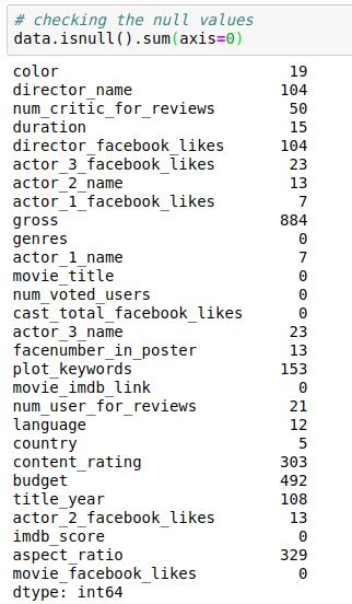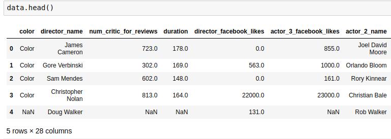 After downloading the data, unzip it and there will be two .csv files. Check them out. We’ll use ‘movie_metadata.csv’ in our code.