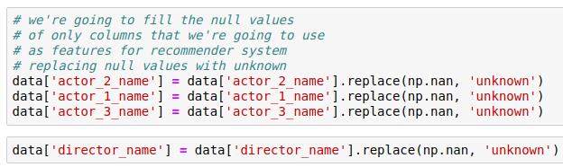 ● Dealing with the null values. Filling them with string ‘unknown’.