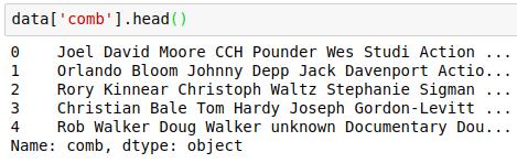● Now we’ll sum up the text of all the features we’re going to use for measuring similarity in one column.