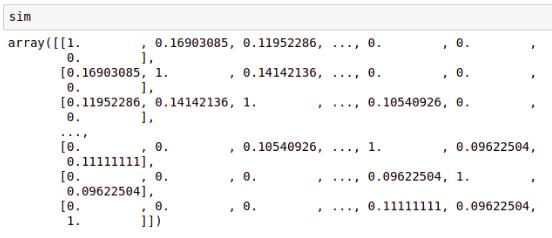 After importing the libraries, now let’s make count matrix of features and then similarity Score matrix. Similarity score matrix contains the cosine similarity of all the movies in the dataset. We can get the similarity score of two movies by there index in dataset.