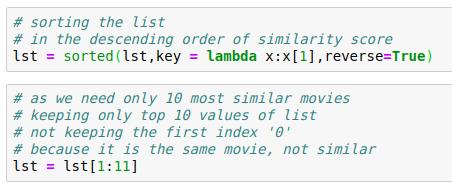 ● Now, let’s sort the similarity score list on the basis of similarity score.
