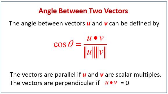 Now we need to find the cosine of angle ‘a’, which is the value of angle between both vectors. Here is the formula used for doing this: